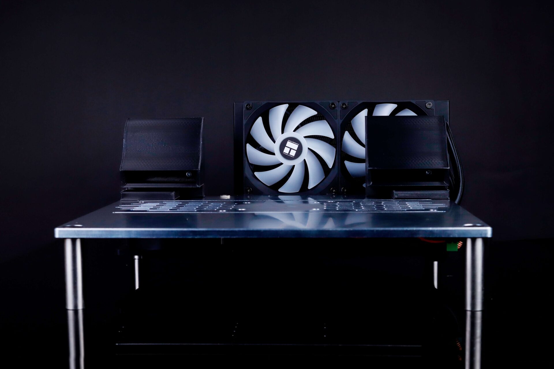 Hệ thống 2 quạt gió áp suất tĩnh cao ( high static pressure fan) sẽ nén luồng gió và hạ nhiệt độ xuống mức 22-24 độ trước khi đi vào bên trong máy, tăng cao đáng kể hiệu quả làm mát, trong khi các loại tản khí bình thường chỉ đơn giản là thổi không khí vào bên trong mà không có thay đổi gì về nhiệt độ